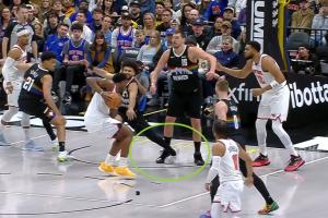 次节末,掘金后卫穆雷防守沉退时左脚不慎踩到队友约基奇,左脚踝向外侧翻连续扭伤。随后穆雷捂着脚踝痛苦倒地,现已回到更衣室。