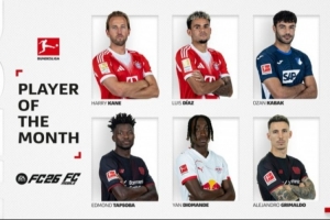 体育资讯3月4日讯 德甲官方公布联赛2月最佳球员候选,凯恩、路易斯·迪亚斯、扬·迪奥曼德等6名球员在列。