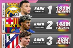 西班牙球队INS粉丝数排名