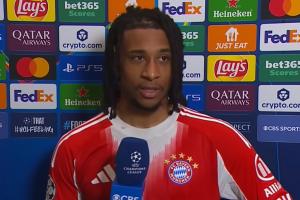 体育资讯03月11日讯 拜仁6-1亚特兰大赛后,奥利塞接受CBS演播室亨利、理查兹等人的采访。
