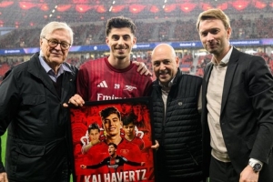 体育资讯3月12日讯 在勒沃库森主场迎战阿森纳的欧冠比赛前,勒沃库森为哈弗茨准备了欢迎仪式。