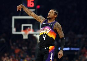 杰伦·格林近期状态一直非常低迷,近6场除了上场比赛16中7之外,其他比赛命中率都没超过40%。近6场杰伦·格林场均仅得13.8分4.0篮板2.0助攻2.0抢断外加2.5失误,投篮命中率29.7%,三分命中率16.3%,罚球命中率64.3%。